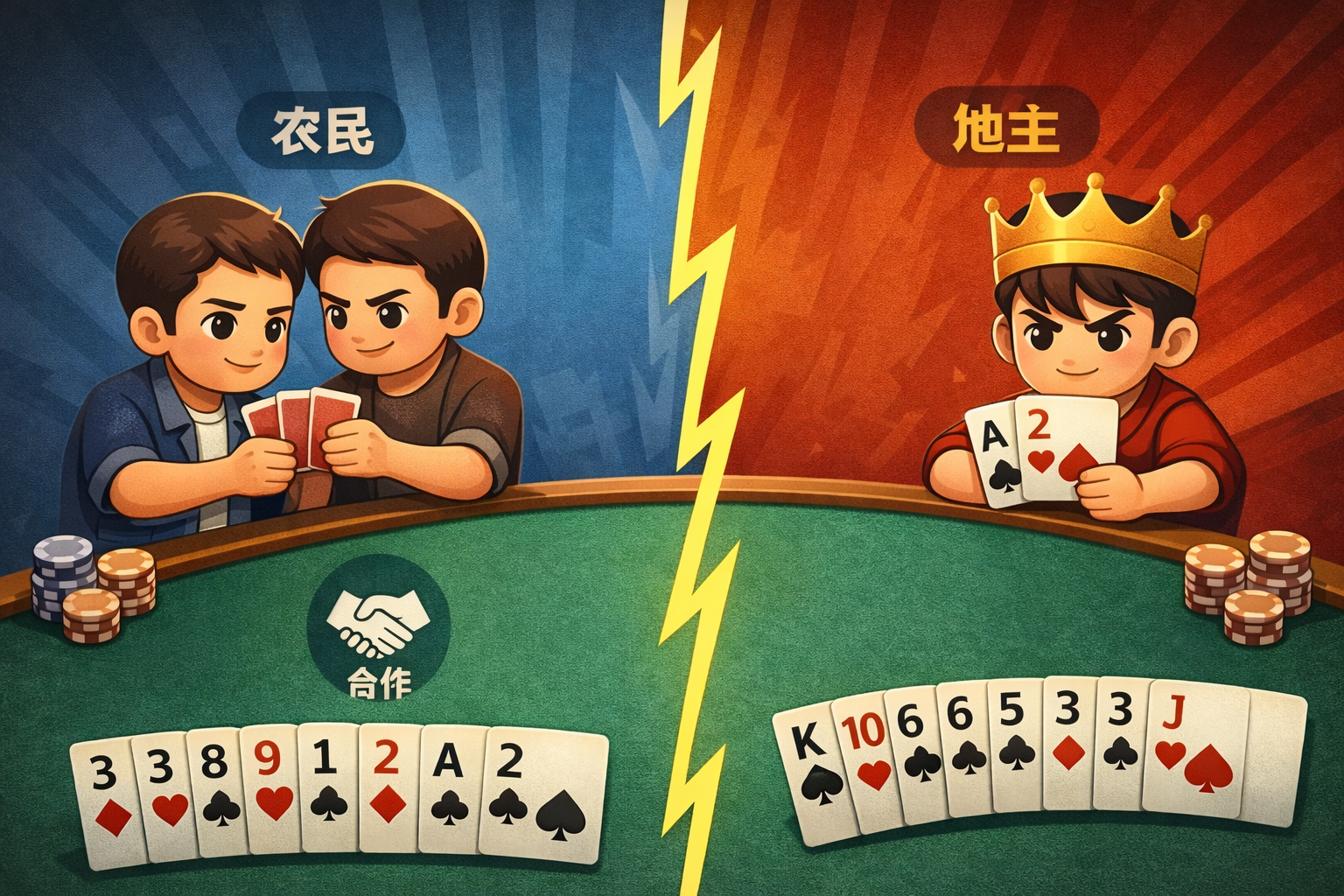 农民规则的设计更加隐蔽。规则没有强制农民如何配合,但通过共享胜负,已经天然鼓励协作。真正顺着规则玩的农民,会懂得牺牲局部,换取整体节奏,而不是急着把自己的牌出完。